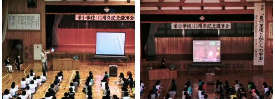 ●七月●《百四十年記念 親子記念講演会》 夏休み前の全校PTAの日に記念講演会をふるさと栄会(柴田邦夫さんと佐藤カツ子さんがご来校)のご支援を頂き実施しました。