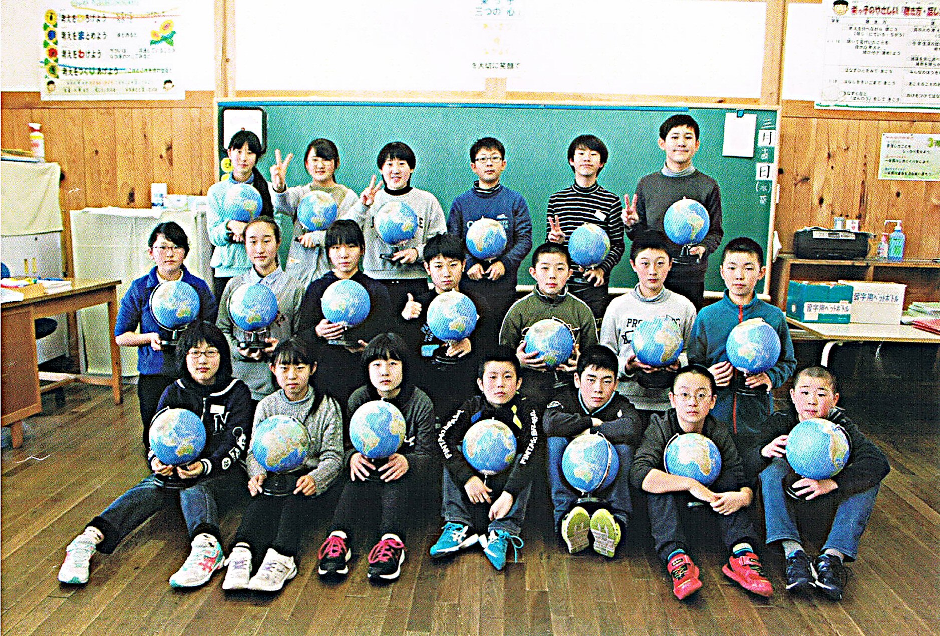 当日のプログラムの表紙を飾った栄小学校の子供たち(H30.3 地球儀を贈られた卒業生たち)