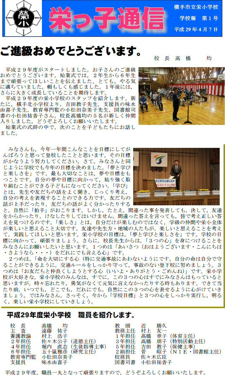 ⇒栄っ子通信を PDF判で表示 ⇒栄小学校の公式ブログ http://blog.goo.ne.jp/yokote_sakaesho